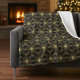 Abstract Gold Starburst Geometric Pattern Black Sherpa Blanket