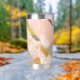 Abstract Gold Stripes and Pink Swirls Personalised Insulated Tumbler