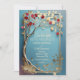 This wedding card features a striking design with a golden frame intertwined with a beautifully crafted tree branch adorned with golden leaves and vibrant red apples. The background transitions from light blue at the top to a slightly darker blue at the bottom, creating a tranquil and elegant setting. The art style merges modern minimalism with Art Nouveau influences, chraacterised by its graceful curves and organic forms. The detailed branch and leaf motifs, combined with the bold red apples, evoke a sense of natural beauty and timeless romance, making this card a perfect choice for a wedding. Personalise the text. You can download the card to your mobile device or computer. I designed the card with the help of generative ai.