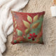 Abstract Golden Large Leaf Floral Artwork With Contrasting bright shades of Red, Golden & Olive Style 30 Throw Pillow