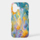 Swirling patterns in shades of blue, purple, and yellow, creating a dreamy and ethereal atmosphere. Thin, golden lines weave throughout the image, adding a sense of movement and flow. The overall mood is serene and calming, with a focus on the beauty of nature.