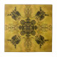This is an interesting design that was challenging and fun to make. The art piece includes gothic and tribal tattoo inspired elements with intricate details in black ink outline line work with a four sided repeating pattern on top of a golden coloured background papyrus paper and blotchy batik fabric style look to it.