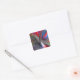 Stickers with an abstract photo of red, lime green, blue, white and black graffiti.