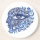 An illustrations of an abstract Greek evil eye and Greek key within a face. Which is the Greek and Turkish symbol of protection.