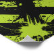 An abstract design featuring diagonal black stripes with bright green paint splashes. The composition combines dynamic motion and bold contrast, creating a sense of energy and texture. The mix of sharp lines and scattered paint marks gives the artwork a modern, urban, and expressive appearance.