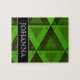 Abstract Green Triangles Pattern + Custom Name Jigsaw Puzzle