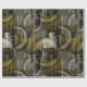 Abstract grunge, monochrome brown, geometric pattern. Circles, lines, squares and scuffs on a grey-brown background.