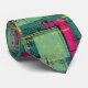 A bold grunge pattern necktie featuring a layered collage of geometric shapes, stenciled circles, rough squares, crosshatch grids, and fragmented text over a distressed, paint-splattered background. The design blends teal/petrol green, magenta/hot pink, and yellow with black and white accents, creating an acid-wash, street-art vibe. It has gritty textures, hand-drawn elements, and retro-urban aesthetic.