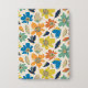 A playful, seamless repeating pattern featuring stylized multicolored flowers and leaves with textured, sketchy edges on a cream background.