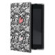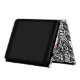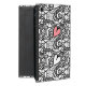 Fun iPad Mini folio style case, done in a black and white abstract doodle art colouring page look, with a pink heart. Personalise the pink name, for yourself or as a great gift idea for her.