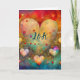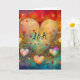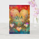 Personalised Valentine's Day card. Red and blue paper mache hearts.