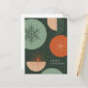 This abstract design features various circular elements in festive colours, including greens, oranges, and light beige, decorated with minimalist snowflakes and star shapes. The simple, modern look makes it versatile for any holiday greeting.