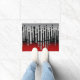 Contemporary painted illustration with vertical stripes in red, light grey and black