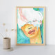 Sometimes we dream of ice cream. This colourful abstract portrait watercolor painting print features a woman with melting ice cream on her head - dripping with colours of blue, greens, and pinks. Originally painted on watercolor paper with archival watercolors.