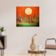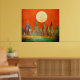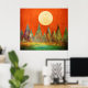 Abstract Landscape Full Moon Mountains Orange Sky Poster