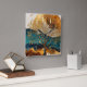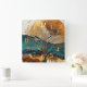 Abstract Landscape Painting Gold Rust Blue Square Wall Clock