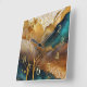 Abstract Landscape Painting Gold Rust Blue Square Wall Clock
