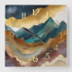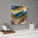 Abstract Landscape Painting Gold Rust Blue Square Wall Clock