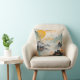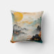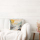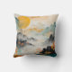 A very abstract landscape that hints at mountains, water, trees, and sky in peach, grey, and gold creates a beautiful, harmonious, wabi-sabi design on this throw pillow.