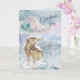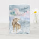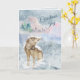 The front of this pretty Holiday card has a watercolor image of a contented wolf sitting in a peaceful mountain landscape, snowflakes lighting on his nose. Pastel colours give the scene a peaceful feeling, and the text says "Christmas Joy". The inside left has another snowy mountain scene, and there are custom text fields on the right side. All the text, front and inside, can be easily customised to say whatever you'd like.