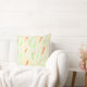This pillow features a modern, abstract leaf design. The colours are soft and calming, with greens, yellows, and oranges. It's a simple way to add a touch of nature to your home. The pattern is eye-catching without being too busy. This pillow is perfect for a living room or bedroom. It brings a fresh and stylish look to any space.