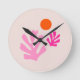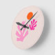 Abstract Leaves Pink Orange Modern Shapes Cut Outs Round Clock