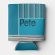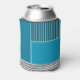 This can cooler has a geometric design of a large teal rectangle in the upper left corner, darker teal stripes in the upper right corner, a lighter smaller teal rectangle below the stripes, and black lines across the bottom. If you like the design but prefer different colours, message me.