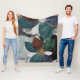 A modern abstract floral artwork blanket featuring oversized petals in teal, burgundy, navy, and crisp white, outlined with delicate golden linework. The layered textures and bold contrasts between dark and light backgrounds create depth and sophistication. Perfect for contemporary interiors, botanical art lovers, and those who appreciate a striking mix of minimalism and luxury.