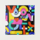 Colourful abstract pattern with word love inside, eyes, tears, colour blocks. Pattern illustration with bright colour-blocking shapes. Trendy colourful pop art geometric pattern with bold shapes on black.