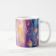 The image showcases a vivid array of abstract flowers set against a background of swirling colors. Bright yellows and purples mix with hints of blue, creating a sense of dynamic motion and energy.