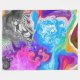 Purple, blue, pink, green, orange, black and white abstract modern marble pour painting fluid art.