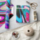 Modern colourful abstract wave marble stone pattern. Yellow blue pink black red