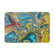 abstract marble swirls yellow teal turquoise blue bath mat