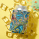 abstract marble swirls yellow teal turquoise blue can cooler