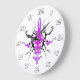 Abstract Mask Tribal Tattoo Design - pink Large Clock