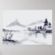 Abstract hand painted minimal landscape in Japanese ink wash style