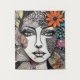 AI generated art of a woman's face in an abstract mixed media style with flowers and doodles