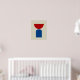 An abstract modern art minimalist design of red and blue geometrical shapes on a beige background.