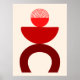 An abstract modern art minimalist design of geometrical shapes in shades of red on a light colored background.