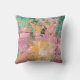 Contemporary abstract modern art throw pillow in pink, turquoise and orange.