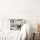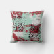 Contemporary abstract modern art throw pillow in red, mint green and black and white.