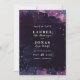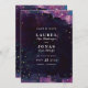 Save the date cards featuring abstract purple, blue and black watercolor paint strokes with gold dots and simple modern text. These darkly chic and unique save the dates are perfect for modern art museum and art gallery weddings!