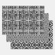 Set of three wrapping paper sheets with decorative patterns. Each pattern features geometric shapes in black and white.