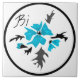 Abstract modern blue flower grey black leaves prin ceramic tile