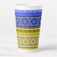Abstract modern decor ornamental geometrical patchwork blue yellow lined pattern