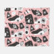 This design features an abstract pattern constructed of hand drawn eyes and lips on a pink background.