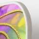 This modern abstract pickleball paddle is eye-catching and makes a true statement with its rich, jewel colours of purple, aqua, and yellow, interlaced with a faux gold metallic. Vivid and stunning. Add a name and initial to personalise it. Created by Simply Farmhouse Press.