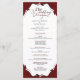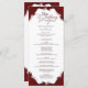 This wedding program card features a modern minimalist design in bold red, creating a refined and elegant impression. The front page neatly displays the wedding details in a clear and stylish format, while the back highlights the couple’s names in a simple framed layout that can be personalised. The rich red tones enhance the minimalist style, making this program card perfect for elegant, formal, and contemporary weddings.