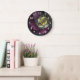 Abstract Modern Purpur Khaki Grey Fractal Flower Large Clock