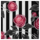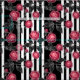 Abstract modern red roses white black striped line fabric